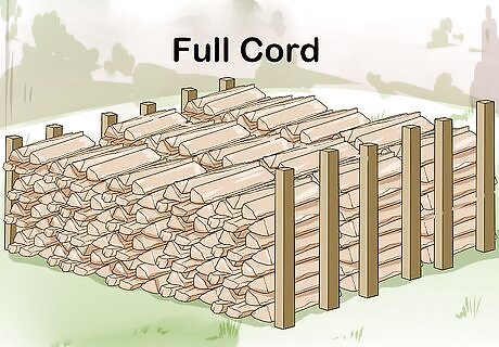 Buy a full cord if you plan to create outdoor fires. A full cord of firewood is approximately 8 ft (2.4 m) long, 4 ft (1.2 m) high, and 4 ft (1.2 m) deep. Due to the sheer size of a full cord, it is best reserved for heavy lumber users making outdoor fires. Full cord logs are too large to fit into most fireplaces without being cut up first.
