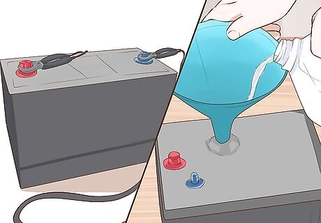 Assess whether or not your wet cell batteries require service. Most modern wet cell batteries are sealed and considered “maintenance free,” but ones that are not sealed will require occasional service. You can usually easily identify if your battery is sealed or not by looking for rectangular ports on the top of the battery. If there are ports, the battery can be opened and requires maintenance to continue working properly. If there are no ports, the battery is sealed and does not require service. Never open the ports without first putting on the appropriate safety gear.
