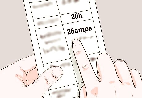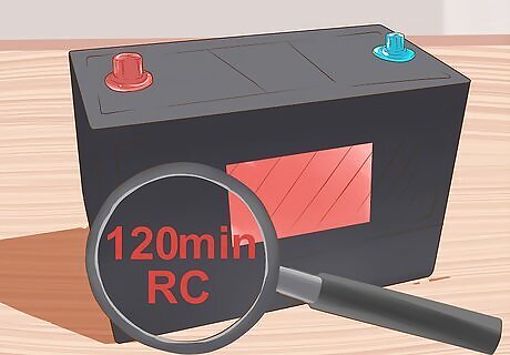 Look for the Amp-Hour and Reserve Capacity ratings. When you know exactly what type of battery you want, make sure to check the Amp-Hour (AH) and Reserve Capacity (RC) ratings to help you choose a specific one. The AH rating is a measure of how many amps the battery you choose will deliver over a span of 20 hours. The RC rating is the length of time the battery you choose can sustain a load of 25 amps. The higher the AH rating, the more things your battery can power. The higher the RC rating, the longer the battery will last while doing so.