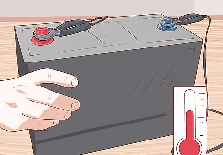 Check for overcharging. After your battery has been plugged into a maintainer or charger for a week, check on it to ensure it isn't overcharging. If the battery is warm to the touch or requires fluid be added to it, the charger you chose is introducing too much electricity into the battery. Slight overcharging can reduce the battery's lifespan, and significant overcharging can cook the battery's internals and prevent it from holding a charge at all. If the battery seems to be overcharging, disconnect it immediately. Clerks at most auto parts stores can help you match a trickle charger to the battery you intend to charge.