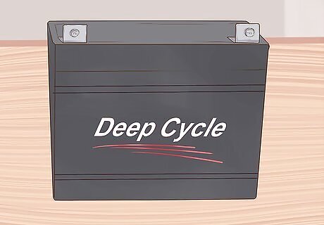Look for deep cycle batteries at auto parts stores or specialty RV stores. Deep cycle batteries are used in a number of applications, so they are carried at most auto parts stores. You may want to shop for deep cycle batteries at specialty RV sales locations however, as their clerks will be more knowledgeable about what you need the batteries to be capable of in order to power the interior of your RV. Ask the clerk at an RV specific retail location for help choosing the best battery for your needs. Deep cycle batteries tend to be slightly more expensive than more common automotive batteries, but can still usually be found for $100 to $400. Let the clerk at an RV specific retail location know about things that may affect battery life like large televisions or multiple computers that will need to be powered.