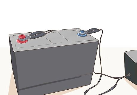 Charge your batteries when stored. Keeping your batteries charged will help prolong their lifespan and ensure your RV works just the way you want it to when you take it out. Some people choose to remove the batteries from their RVs while storing them, but that isn't necessary. Plug your RV batteries into a battery maintainer or trickle charger with a storage setting. Never plug any of your RVs batteries into a trickle charger that does not have a maintenance or storage setting, as you run the risk of overcharging them. Your deep cycle and starter batteries can be stored and charged using the same methods. Make sure the voltage output on the trickle charger or maintainer you choose matches the voltage of the battery or you risk damaging the battery.