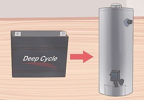 Consider using a marine battery. Deep cycle batteries are the best option for powering the living quarters of your RV, but they aren't the only one. Marine batteries can also be used for this purpose. These batteries can serve as either chassis or living quarters batteries because they are designed to produce both high initial output and consistent long lasting output. They don't do either as well as batteries designed to do just one thing, but do both well enough for use. Marine batteries are not as efficient as deep cycle batteries, but come at a significantly lower cost. You cannot deplete marine battery as deeply or as often as you can with deep cycle batteries.
