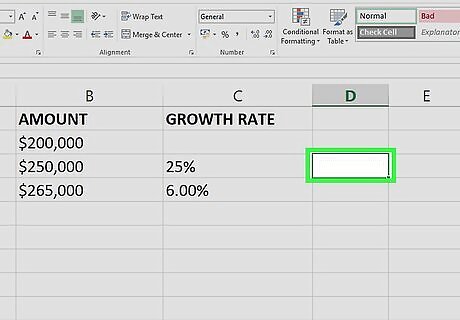 Double-click a blank cell in a different column. This cell is where the average growth rate of your existing data will appear.