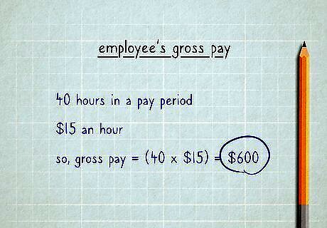 Determine the employee's gross pay. Before you can begin to calculate payroll, you must know what the employee's gross income is. This is determined by multiplying the number of hours worked in a pay period by the hourly rate. For example, if an employee works 40 hours in a pay period and earns $15 an hour, you would multiply 40 times $15 to get a gross pay of $600. Don't forget to factor in any overtime, commissions, or bonuses awarded during the pay period. Pay periods may be weekly, bi-weekly, or monthly. If the period is bi-weekly, for instance, then a full-time employee should work about 80 hours. An employee with a fixed salary will earn the same amount no matter how many hours they work.