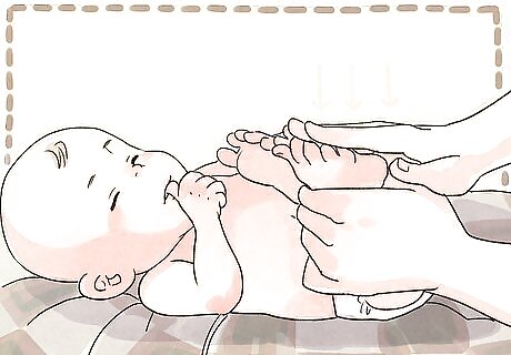 Give your baby a massage. Another thing you can do is to gently massage your baby's body. Touch his/her palms, the pads of his/her feet, his/her shoulders, and the rest of his/her body gently so that he/she is soothed by your loving touch. You can just use the pads of your fingers to gently massage your baby, helping ease the tension that he/she is feeling. Just remember that, much like a warm bath, some babies can actually be more agitated after a massage, so you should be vigilant when you try it so you see how your baby feels.