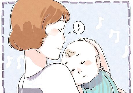 Try shushing your baby. Sometimes babies end up making themselves more upset by their own loud tears. You can help calm them down by getting them to be quieter until their tears and fussiness stops all together. To do this, you can gently shush your baby in a sweet, calm way — as opposed to the way a student might be shushed by a librarian. In order to shush your baby, you should simply softly speak or shush just a bit louder than your baby and then slowly lower the volume of your voice until your baby's voice matches yours.