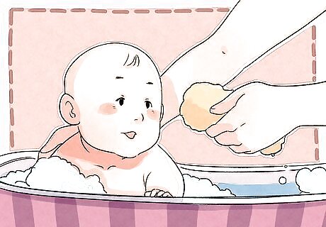 Give your baby a warm bath. A warm bath can be the perfect soothing technique for some babies. It can help get them ready for a nap or just relax them and make them feel less tense, just as a warm bath has been proven to help many adults relieve tension in the past. Though this doesn't work for all babies, you can try it to see if it has a positive impact on your child. Unfortunately, some babies actually get agitated after warm baths, so be vigilant when you do try this technique to see the effect it's really having on your baby.