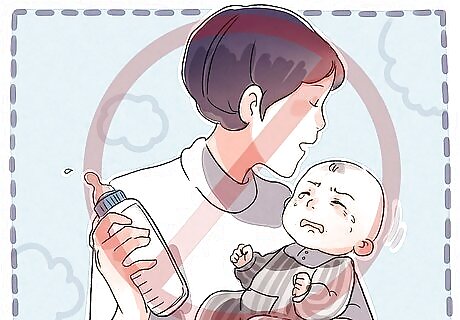 Give your baby something to suck on. If your baby is fussy, then he/she may be wanting something to suck on. He/she may not need a breast or a bottle but you can find something else to do the trick. You can give him/her a pacifier, put his/her thumb in his/her mouth, or even give him/her your pinkie nail, with the nail side down. Your baby may feel comforted from these simple offerings.