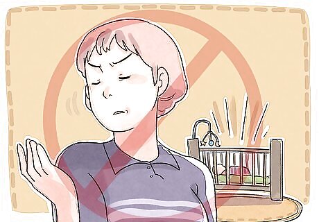 Never, ever, ever shake your baby. Though you may get frustrated with your baby from time to time, the worst thing you can do is to shake him/her. Even shaking your baby for just a few seconds can cause damage that cannot be undone. If you feel yourself truly losing patience with your child, take a few seconds or minutes to leave the room until you feel that you can safely return to your baby. If you have a real problem with anger toward your baby, see a doctor immediately to keep your baby safe. Over 1000 babies die a year from Shaken Baby Syndrome. It is 100% preventable. Shaking your baby can lead to death, brain damage, mental disabilities, seizures, and even blindness.