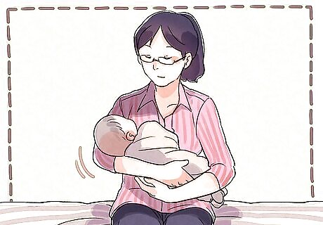 Enable side lying in your arms. Side lying can be another source of calm and comfort for your baby. To do it properly, just hold your baby at an angle and allow him/her to be on a side. Your baby can stop being fussy simply by changing the way that he/she is lying down. You can do this in your arms as long as you avoid placing the baby on his/her side in his/her crib, or this can cause him/her to roll over on his/her stomach, which will increase the risk of Sudden Infant Death Syndrome (SIDS).