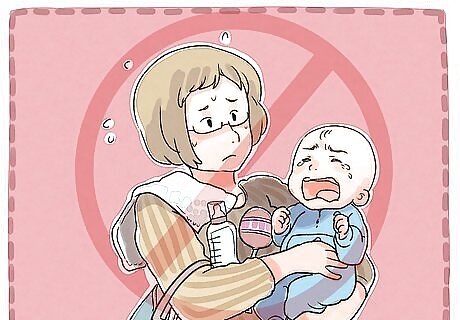 Avoid "letting them cry it out". A common piece of advice for many women in older generations was to not rush in to soothe every cry--that the child needs to deal with it. But today's general advice is that children under 1 or so are crying because something is wrong. The baby is helpless, and looks to you for help. Ignoring the baby's cries with the idea that "they will be spoiled if you do" does no one any good. Avoid letting your baby cry and cry, but sometimes you will find yourself unable to discover why the baby is crying. This can be upsetting to everyone. But the good news is that rarely do these episodes cause any lasting harm, either. Sometimes you never will find out why all the crying, and it is OK. Life goes on. Sometimes you cannot immediately soothe a baby. Sometimes you cannot feed a baby immediately, or change his/her diaper, or give him/her attention. For example, you are driving home and cannot pull over to feed your baby. It may make him/her upset, but these situations occur and human babies will survive if you cannot drop everything immediately and remedy the situation. If you are overwhelmed as a caregiver, when these crying jags occur it is OK to sometimes take a few minutes to yourself. Take a quick shower. Call your mother. These times can cause even the most loving mother or father to feel short-tempered. Sometimes stepping away for a few moments can really help you deal with this sort of situation.