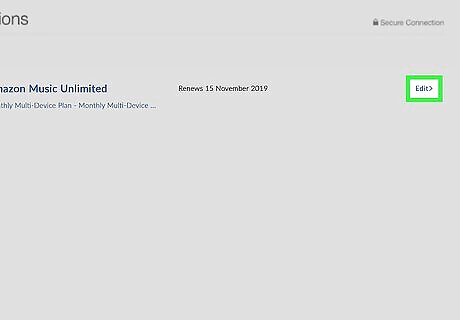 Click Edit next to your Amazon Music Unlimited subscription. You may have to scroll down a bit to find it.
