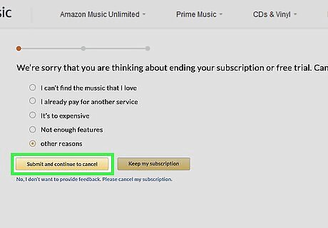 Follow the on-screen instructions to cancel your subscription. This ends your subscription at the end of the current billing cycle. You can keep listening to Amazon Music Unlimited through the cycle's last date.