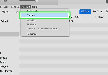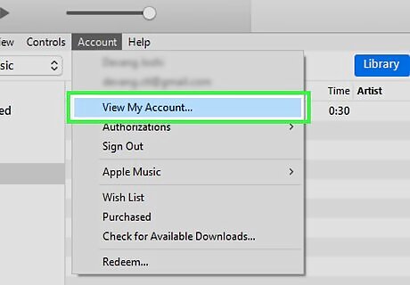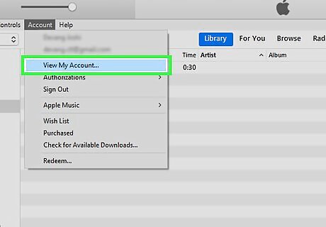 Click the Account menu. It's at the top of the screen (or at the top of iTunes).