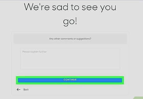 Click or tap Close My Account. You might be offered to continue using the app at a discount or for free, but the Close My Account button should be in white with blue text.