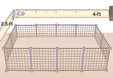 Give your guinea pig the largest possible cage. A larger cage will give your pet more space to get some exercise, which is important for guinea pigs. Since guinea pigs don’t use wheels or balls for exercise, the larger cage is more important because it allows them space to run around. For one guinea pig, your cage should be at least 2.5-feet (.76 meter) by 3-feet (.91 meter) large. For two guinea pigs, your cage should be at least 2.5-feet (.76 meter) by 4-feet (1.2 meters) large.