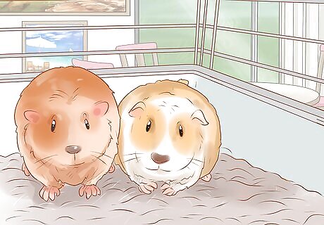 Adopt two guinea pigs together. Guinea pigs crave companionship, so keeping two together is often the best way to keep your pet happy. If you can’t spend much time with it, then a single guinea pig may get depressed. Try to get a pair of siblings, a pair of females, a pair of neutered males, or a male and female that have been fixed. An unfixed male and female pair will mate.