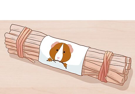 Provide your guinea pig with untreated wood at all times. Guinea pigs need to grind down their teeth, and wood gives them something to chew on. You can find wooden rods, wooden toys, or wood blocks to put in the cage. You can find untreated wood at your local pet store or online. You should also provide hay at all times for your guinea pig to chew on, which will help maintain its dental health.