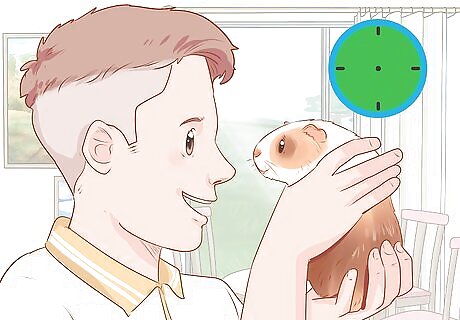 Spend time with your guinea pig. Crested guinea pigs are often shier than other breeds, but they can become more open to you if you spend plenty of time with them. Play with your pet for at least an hour every day, and try to hold your piggy.