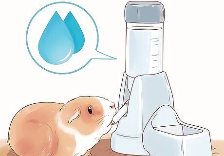 Provide fresh water in a bottle. Water dishes don’t work well for guinea pigs because they spill easily. It’s also hard for the guinea pig to drink from a bowl because of its short neck. The water bottle will keep the water fresh, full, and easy to drink.