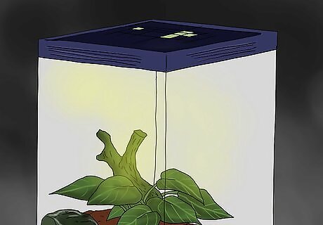 Provide a source of light with the appropriate spectrum and intensity for all live plant specimens. If you choose not to use live plants, be sure to allow dim to moderate lighting to help keep the frogs on their normal photoperiod. Typically, this means 12 hours on and 12 hours off. The use of an automatic timer is nice too, especially for waterfall systems. Ensure that the light you choose does not increase the temperature or decrease the humidity too much, or make adjustments to account for the difference.
