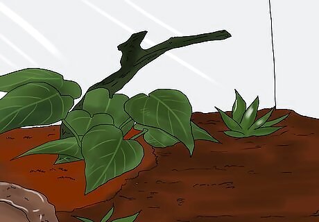Add the correct substrate on the bottom of the enclosure. Use forest floor bedding and have about 2 inches (5cm) of soil for the floor of the enclosure. Forest floor holds humidity longer and allows for Coprophagous insects to develop and help break down any missed fecal matter. This is essential to help with the ecosystem of your enclosure.