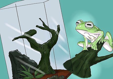 Choose a proper enclosure. Considering that glass frogs are typically arboreal in nature, they need an enclosure that provides more vertical than horizontal real estate. They need plenty of branches and vines to scale and preferably a nice cork background. The size of enclosure is the standard 10 gallons (37 liters) per inch (2.5 cm) of frog. Some find this a bit extreme, but they love to explore. The more room you give them, the happier they will be.