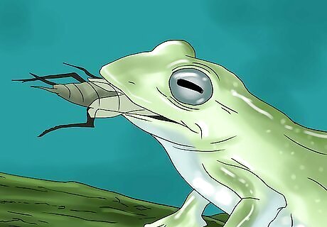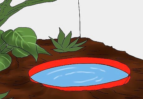 Provide a constant source of water. Be sure to keep either a large shallow bowl of distilled or RO (reverse osmosis) water or create a waterfall/pool for the frogs. Just be sure to provide the frogs with multiple easy escapes from the water; they aren't good swimmers and can easily drown. Water should be kept clean and changed daily or as needed. Frogs tend to like to eliminate their bowels in water.