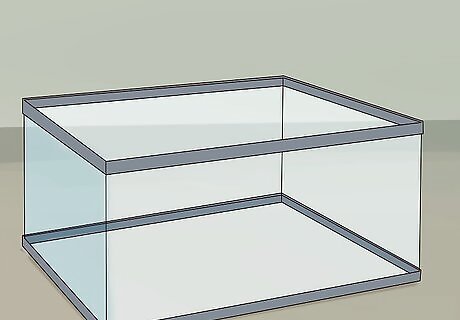 Purchase a 28 gallon (110 L) enclosure for your snake. The most important thing is to ensure the habitat is fully escape-proof, allows for air circulation and is large enough for the snake to fully stretch its body inside the enclosure. You can choose either a glass terrarium or a plastic tub. If you chose a tub, drill air holes on all sides of the tub. The holes should be small; only air needs to be able to get in. Plastic tubs are great if you want to save money on a fancy cage. Make sure to put something heavy on top of the tub, like books, so that there is absolutely no chance of escape. Choose a tank if you want a more visually pleasing enclosure. You can purchase clips at the pet store that will hold the lid in place and prevent escape. If you're getting a baby boa, make sure to get a 10 gallon (37.9 L) enclosure. When the snake grows, you can get them a 28 gallon (110 L) enclosure.
