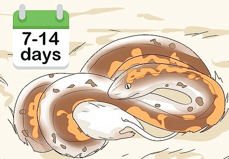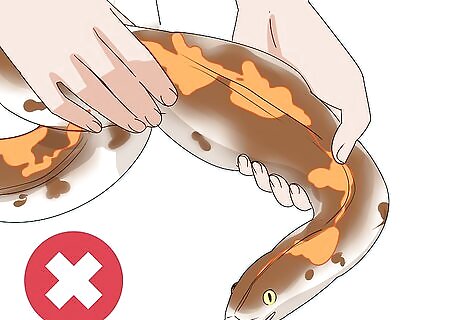 Avoid holding the snake immediately after feeding. It takes a while for snakes to process a meal. Don't make them uncomfortable by trying to handle them while they have a full belly. Wait 24 hours after feeding before handling your snake. If you notice that your snake is shedding its skin, avoid handling them during this time, too. The shedding period might last a week or 2.