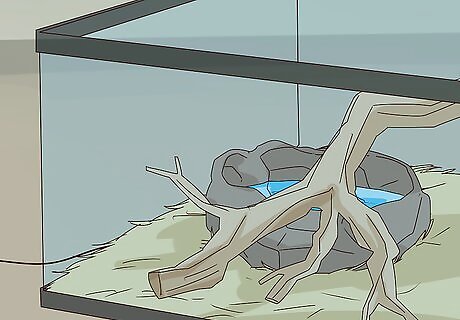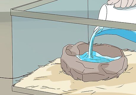 Place a water bowl in the enclosure. Make sure there is a water bowl with fresh, clean and dechlorinated water present inside the enclosure at all times. A small dish is fine. Place it on the cool side of the cage.