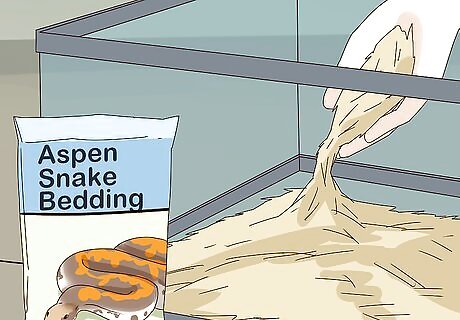 Place a substrate of bedding or soil on the floor of the enclosure. Aspen snake bedding or potting soil can be used as a substrate for a Kenyan Sand Boa. These two types of substrates are most commonly used and are inexpensive. You can purchase these online or from a pet store. Kenyan Sand Boas love to burrow underground in the wild, and substrate will allow it to do just that! Make sure the enclosure has enough substrate in it to allow your Kenyan Sand Boa to fully submerge itself under it. A few inches will generally be plenty.