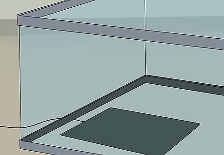 Add a heating element to the enclosure. Three common tools used to heat a reptile’s enclosure are under-tank heaters (UTH), heat tapes and/or heat lamps. UTHs or heat tape are preferred for heating snake enclosures since snakes do not require UV light to survive. You can purchase all of these online or at pet supply stores. Make sure your enclosure is at the correct temperature before purchasing the Kenyan Sand Boa. The warm side of the enclosure should be at about 95 degrees Fahrenheit, and the cool side should be around 80 degrees Fahrenheit. You can purchase a thermometer for the tank online or at the pet store. If you’re using a plastic tub, you will not be able to use a heat lamp as it won’t fit inside the tub and may melt the plastic of the tub. Heat tape and UTHs are more energy efficient and do a great job at heating a plastic tub enclosure without melting it. Make sure to place them outside of the enclosure.