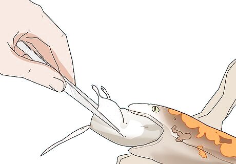 Use tweezers or tongs to feed your snake. Even in captivity, sand boas sometimes enjoy "attacking" their prey. They might hide in a tunnel and sort of pounce at the food coming into their cage. To avoid having your finger accidentally bitten, lower the prey into the cage with tweezers or tongs. You can wiggle the dead mouse around a bit to simulate live prey for your snake.