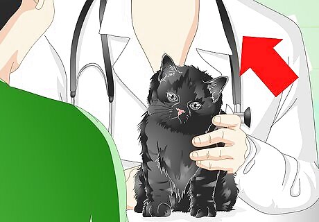 Take your cat to the veterinarian. The principles of weight loss in cats are simple—eating less and exercising more. To help your cat reach her ideal body weight, you'll need a plan to put these principles into practice. Your veterinarian can help you develop this plan, but he or she will need to examine your cat first. Your veterinarian can determine if there are any underlying health conditions that could make it more difficult for your cat to lose weight. Your veterinarian will do a thorough physical examination of your cat and weigh her. He or she will also analyze your cat’s blood and urine. A swinging pouch behind your cat’s hind legs indicates that your cat is overweight. The ideal weight for the average domestic shorthaired cat is 8 to 10 pounds (3.6 to 4.5 kg).