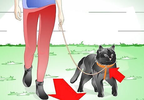 Walk your cat on a leash. Walking your cat on a leash can be a good way to increase her activity. Plus, she may enjoy getting some fresh air and seeing some new sights. Keep in mind, though, that not all cats will actually walk when they go outside—some may spend more time sniffing things in the environment than walking. For some cats, being walked outside on a leash is mental exercise, not physical exercise.