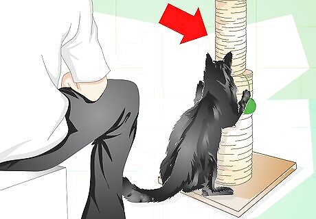 Give your cat a scratching post. Scratching posts give cats a good way to stretch and exercise their muscles. Posts are either horizontal or vertical and come in a variety of materials, such as sisal. The scratching post should be long or tall enough (about two feet) for your cat to stretch her entire body out when she scratches. If your cat already has a scratching post, entice her to use it more by placing some catnip by it.