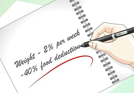 Develop a weight loss plan. Weight loss should happen slowly in cats. Rapid weight loss can cause a serious medical condition called hepatic lipidosis. Your veterinarian will be able to recommend a carefully crafted plan that will help your cat lose about one to two percent of her body weight per week until she reaches her optimal weight. One to two percent weight loss per week is ideal for a cat on a weight loss plan. The plan may involve a 20 to 40% reduction in your cat’s current food intake. Discuss the plan with your veterinarian so you understand exactly what you will need to do at home to help your cat lose weight. The plan will likely involve changes to your cat’s daily feeding and activity routine, so you should make sure you are comfortable with the changes you will need to make.