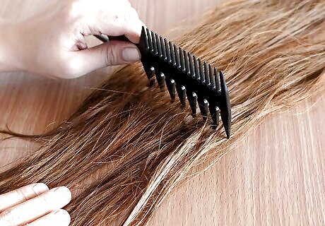 Condition the extensions. Apply some conditioner directly to your extensions. Comb the conditioner into them. Make sure to comb in the conditioner from the top weft of each extension down. Place the extensions back on the towel and fold it over. Let them sit for about an hour. Make sure to only comb the hair in one direction at a time or it could lose its shape. Never comb extensions that are soaking wet or they will become tangled.