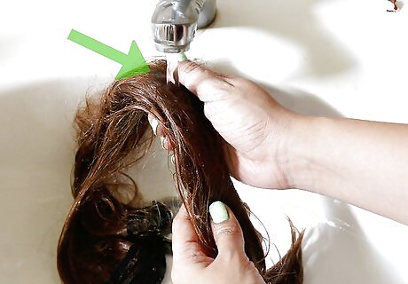 Rinse your extensions. Gently take your extensions out of the sink and rinse them under the running faucet. Make sure the running water is cold so that it locks moisture in the extensions. Wring out any excess water and spread the extensions out flat on top of a fresh towel.