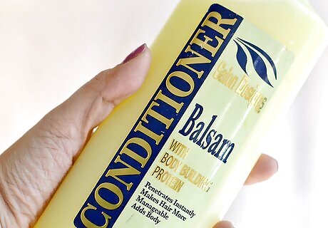 Use conditioner. Each strand of hair has a protective cuticle layer. Not only does the cuticle layer protect the hair strand, it also reflects sunlight which gives your hair its shine. Throughout the day, the cuticle layer gets broken down, leaving your hair looking limp and dull. Conditioners give your hair back its body and shine by releasing positively charged particles that latch onto the negatively charged parts of your hair and repair the cuticle layers. Make sure to work the conditioner all the way into the roots of your hair. If you have braids or curly extensions, you should use a leave-in conditioner on them during the day.