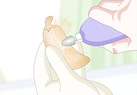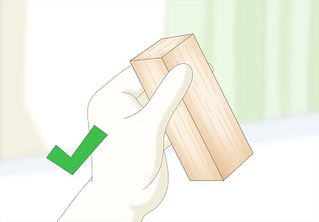 Wear a wood carving glove on the hand that holds the wood. Use a leather hide work glove or purchase a glove designed for wood carving. You just need 1 glove for your non-dominant hand. The hand that holds the knife, your dominant hand, will be glove-free. You can protect the thumb on your cutting hand with a leather thumb guard designed for wood carving.