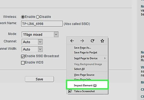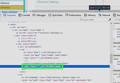 Open the menu in the top right and choose "Wireless" to navigate to the Wireless settings page. Choose either 2.4G or 5G to edit the settings for that band. You may notice that the fields are not clickable, or editable. All they're doing is adding a disabled tag to the HTML, and we're going to remove that.