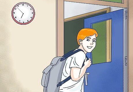Be on time. Being on time for class lets teachers know that you value their time and energy. After all, it takes a lot of work for them to come to class, too. If you arrive to class with some extra time, ask if there’s anything you can do to help your teacher setup or prepare for class. They’ll probably be grateful that you offered. If you’re late consistently, write them a note to apologize and explain yourself. Being on time is a good habit to develop early, as it will benefit you throughout your entire life.