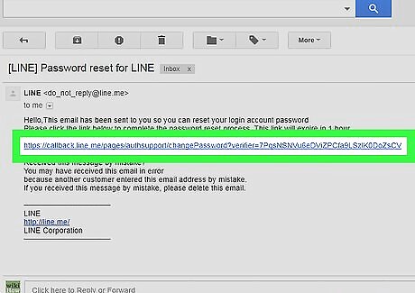 Open the email message from LINE. This message contains a link you must follow to reset the password.