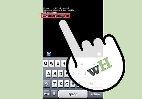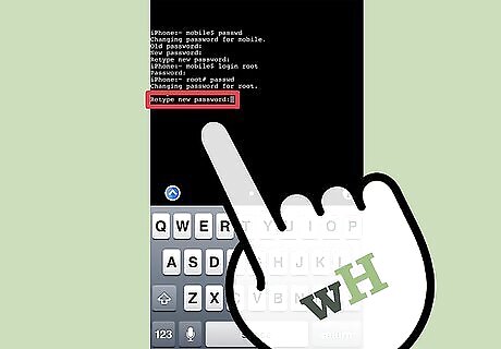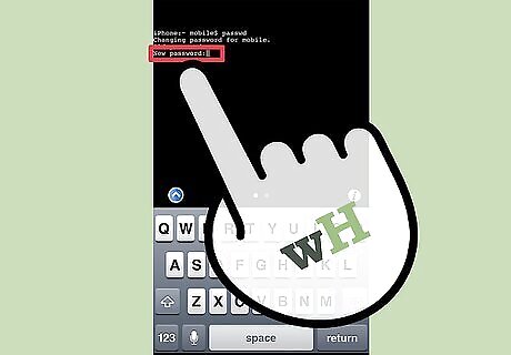 Once you have MobileTerminal installed, launch it and you should see a prompt saying this or similar: iPhone Name: ~ Mobile$ At that prompt, type: passwd