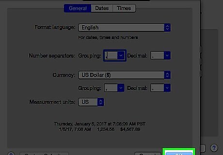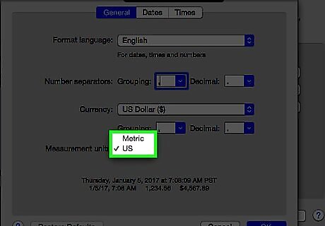 Click on OK. You've now changed your Mac's units of measurement to your preferred settings. Changing these settings will change the default units your Mac uses when it displays such information in places like the menu bar or the Notifications Center.
