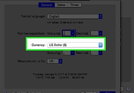 Click on the drop-down menu next to "Currency." Select your preferred currency unit.