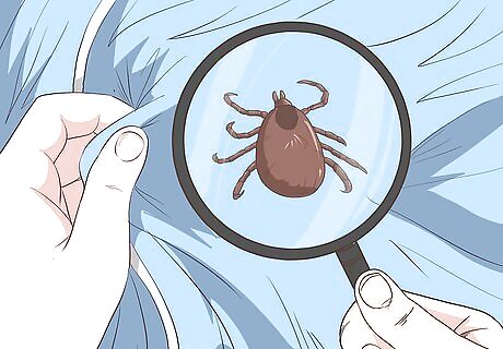 Check your clothes for ticks. As soon as you come back from the outdoors, remove all of your clothing. This stops the ticks from living in your clothes and attaching themselves to you later. Check both sides of each item of clothing for ticks before putting them in the wash. Wash your clothes in hot water and dry them in the dryer. This will help to kill any ticks that you may not have spotted.